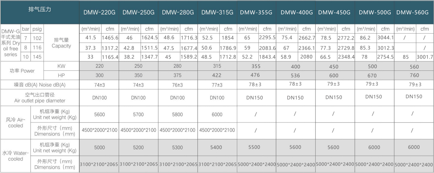 DMWV-G系列干式无油永磁变频螺杆式空气压缩机DMWLV-G系列低压千式无油螺杆式空气压缩机